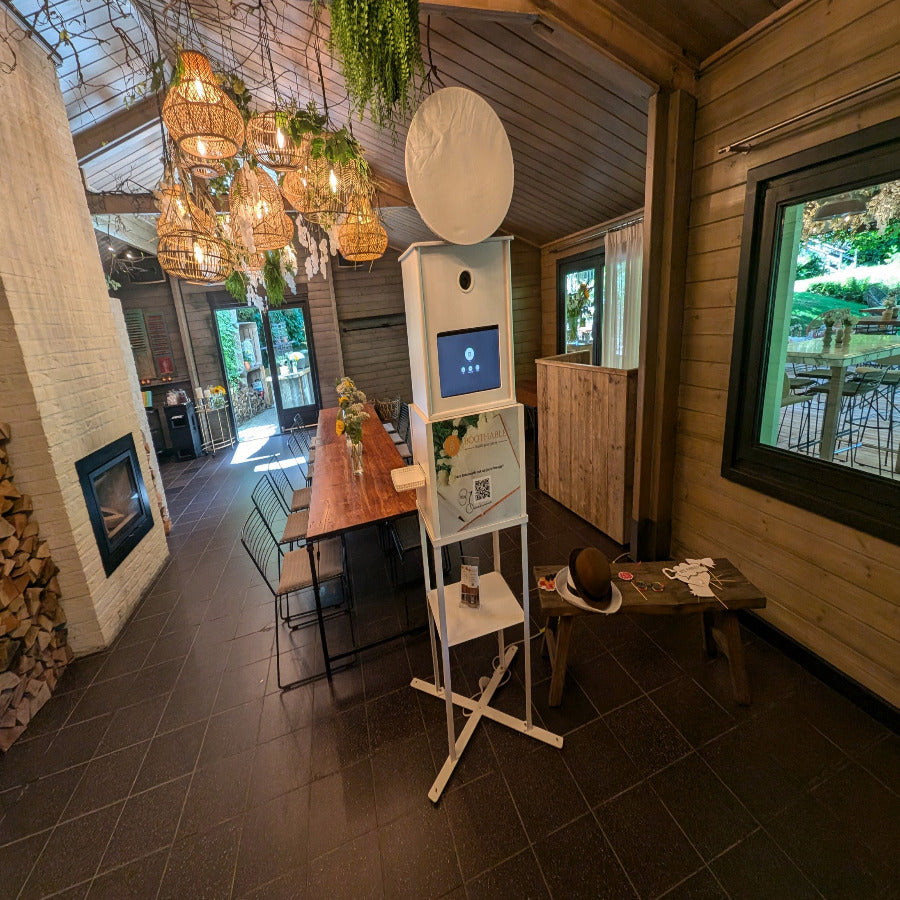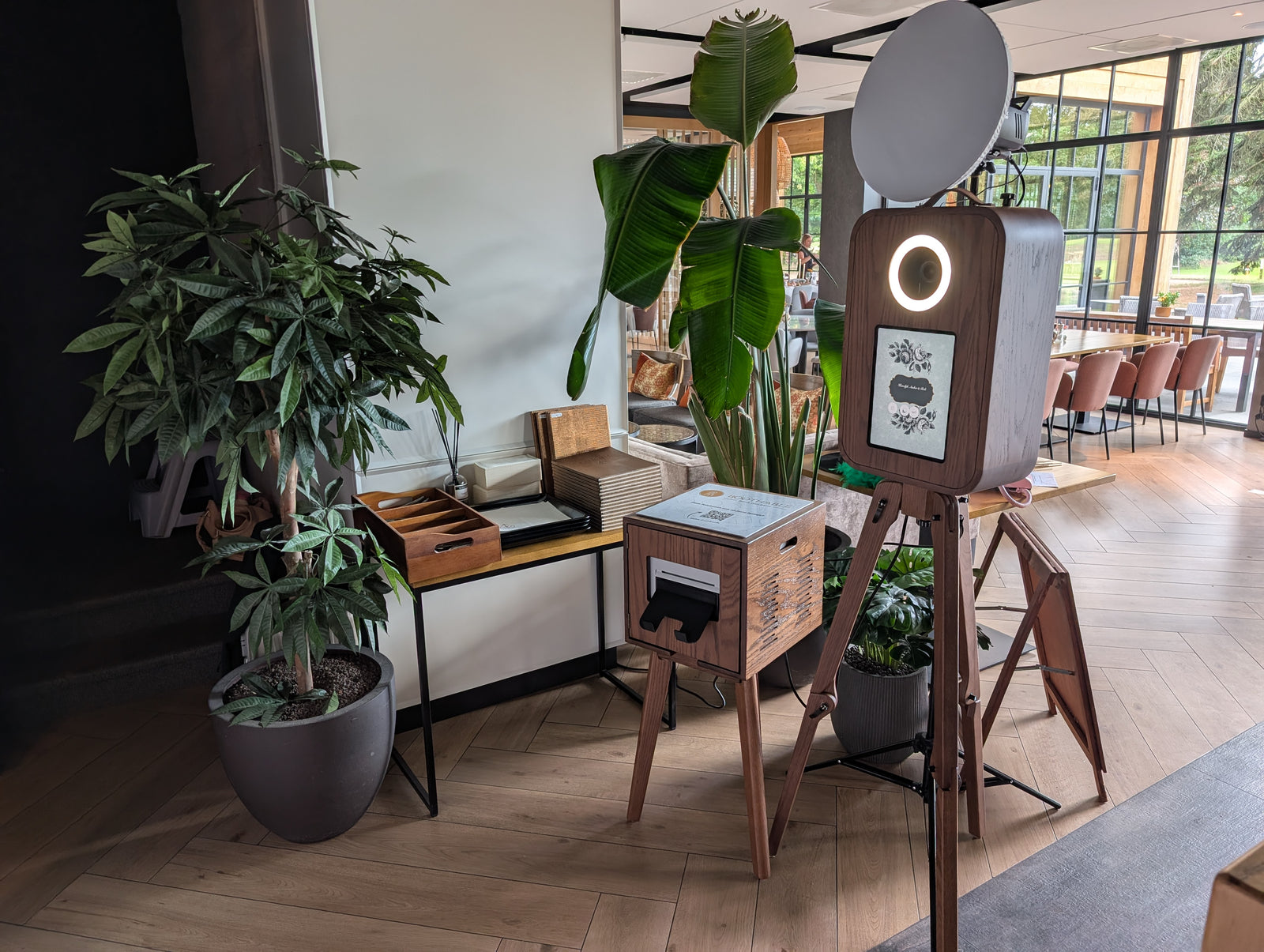 Voeg optioneel een audio guestbook toe of kies voor gepersonaliseerde prints en thematische achtergronden.